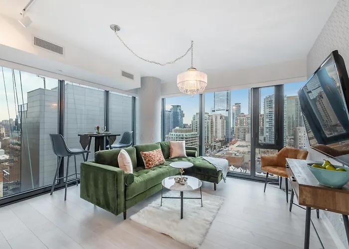 O Designer One Bedroom Suite - Yorkville Toronto de 1 quartos se situa 3.1 km do Torre CN e a alguns passos da estação de metro Bay. Durante a sua estadia neste apartamento, os hóspedes podem visitar Museu Real de Ontário, que fica a aproximadamente 5 minutos de distância a pé, e desfrutar de vistas para a cidade ou relaxar na piscina em ambiente fechado.